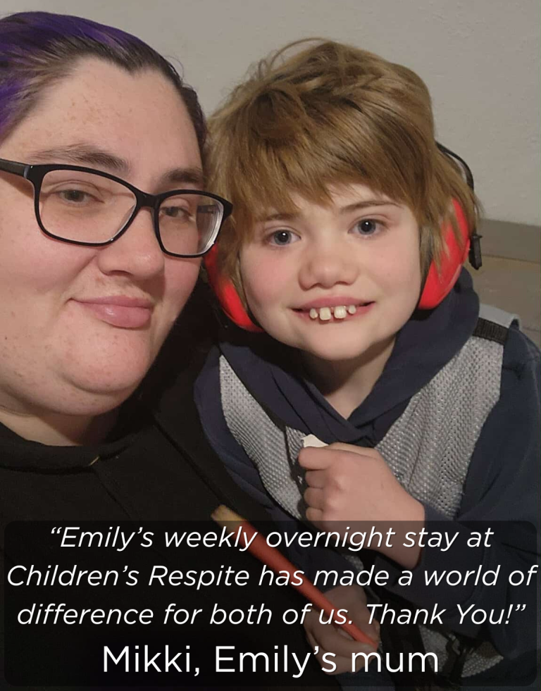 Good news: Emily now spends a night each week at Able’s Children’s Respite service.